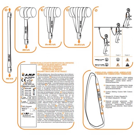 Fabriqué par Camp avec une sangle tubulaire de protection extérieure et une sangle portante interne qui peut servir de témoin d'usure.