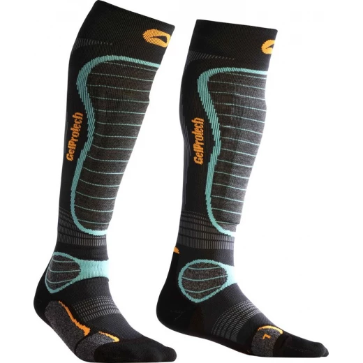 Ces chaussettes rembourrées sont conçues pour la pratique du ski.N'ayez plus mal aux tibias, grâce à la plaque de gel qui est insérée dans la chaussette, et qui s'enlève pour le lavage.