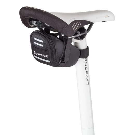 Fabriquée avec un tissu résistant et léger, la sacoche de selle Race Light S de Vaude est pourvue de bandes auto-agrippantes pour une installation rapide.